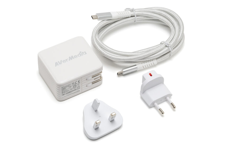 本体はつや消しのホワイトカラーで、側面にAVerMediaのロゴを配置。表面には細かなラインパターンがあしらわれており、シンプルながらもアクセントのあるデザインになっています。