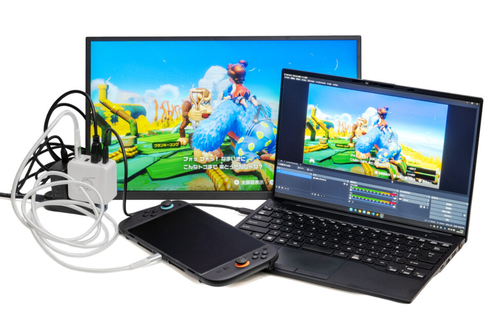 SwitchやノートPCをつなげば、プレイ映像を録画しながら充電もできるので、配信者や外出先でのプレイ動画撮影にも活躍します。実際に使ってみると、コンパクトながら想像以上に便利なガジェットでした。