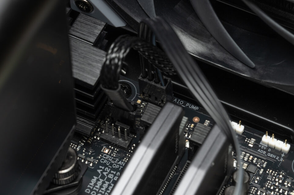 見た目だけではなく、冷却性能もハイエンドらしくしっかりしていましたし、簡易水冷クーラーを使っていると気になる電源回路周りの冷却もVRMファンの搭載によって解消してくれています。