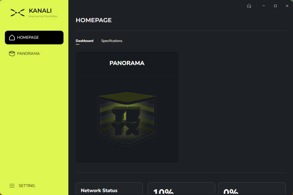 KANALIの起動画面。「PANORAMA」から、ディスプレイを制御できます