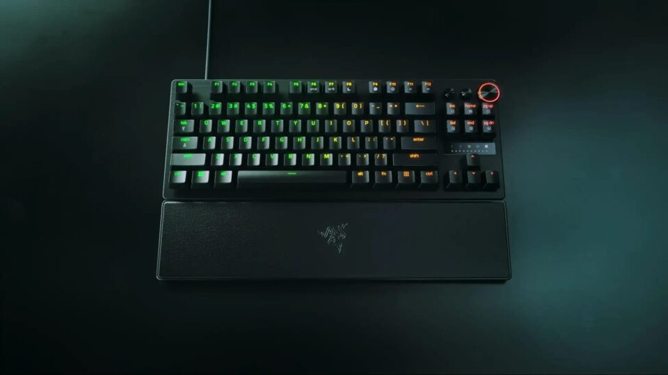 Razerのアナログオプティカルスイッチを採用したテンキーレスモデル。細かなアクチュエーション調整ができるので、自分の入力感覚にしっかり合わせられるのが魅力です。省スペースで扱いやすく、取り回しも軽快。反応の速さと打鍵感のバランスがよく、ゲームでも作業でもストレスのない使い心地。