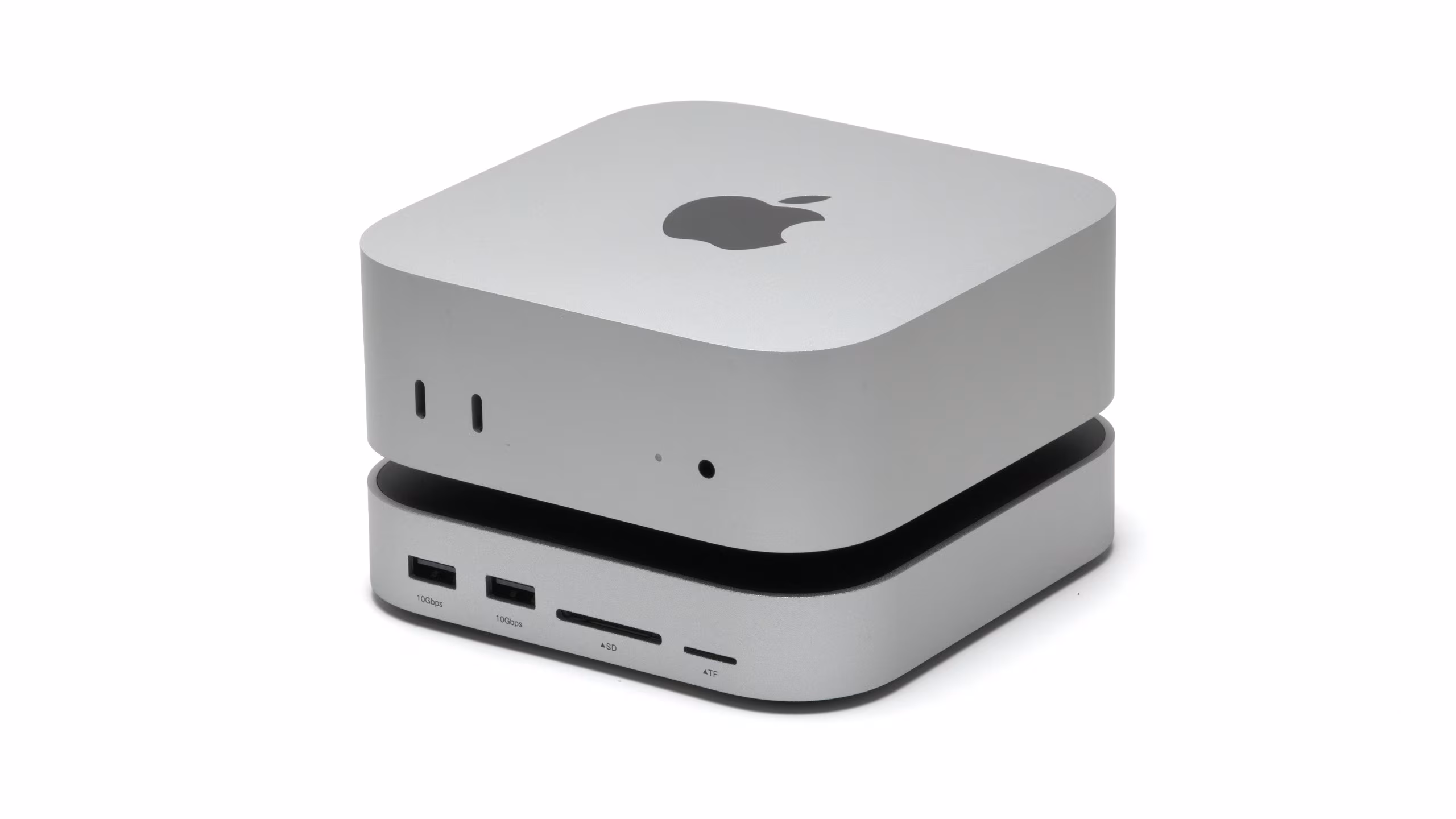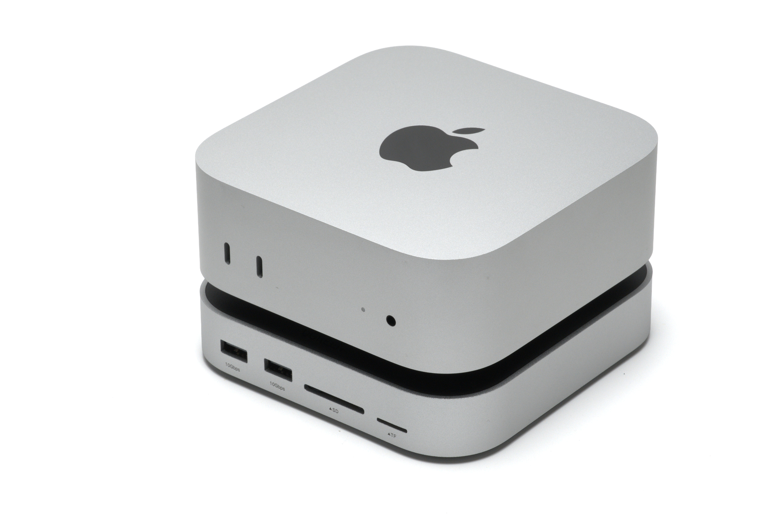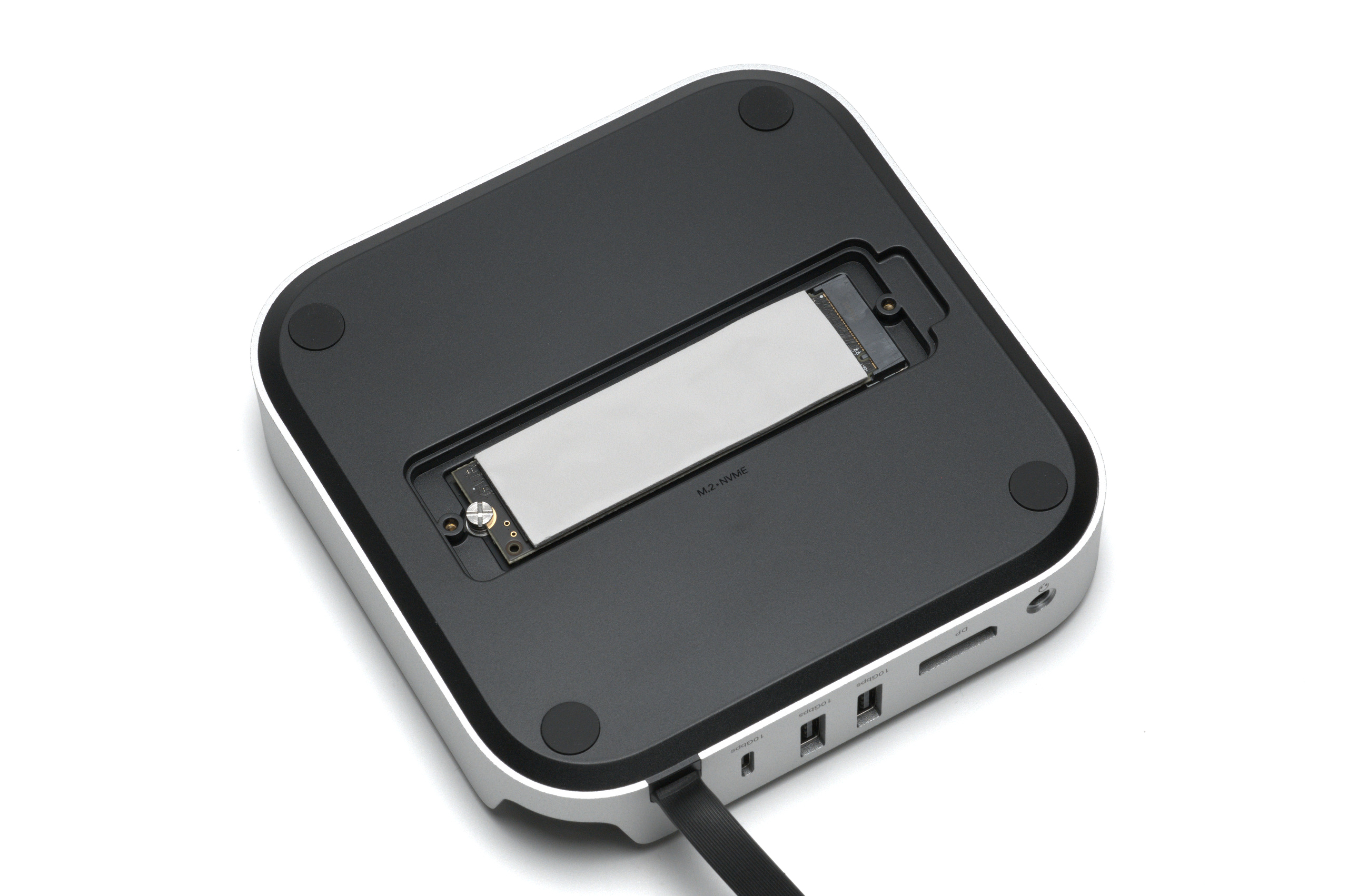 Mac miniの下に置いて使うドッキングステーションで、USB-A×4やSDカードスロット、DisplayPort、M.2 NVMe SSDスロットなど10ポートを増設できるモデルです。