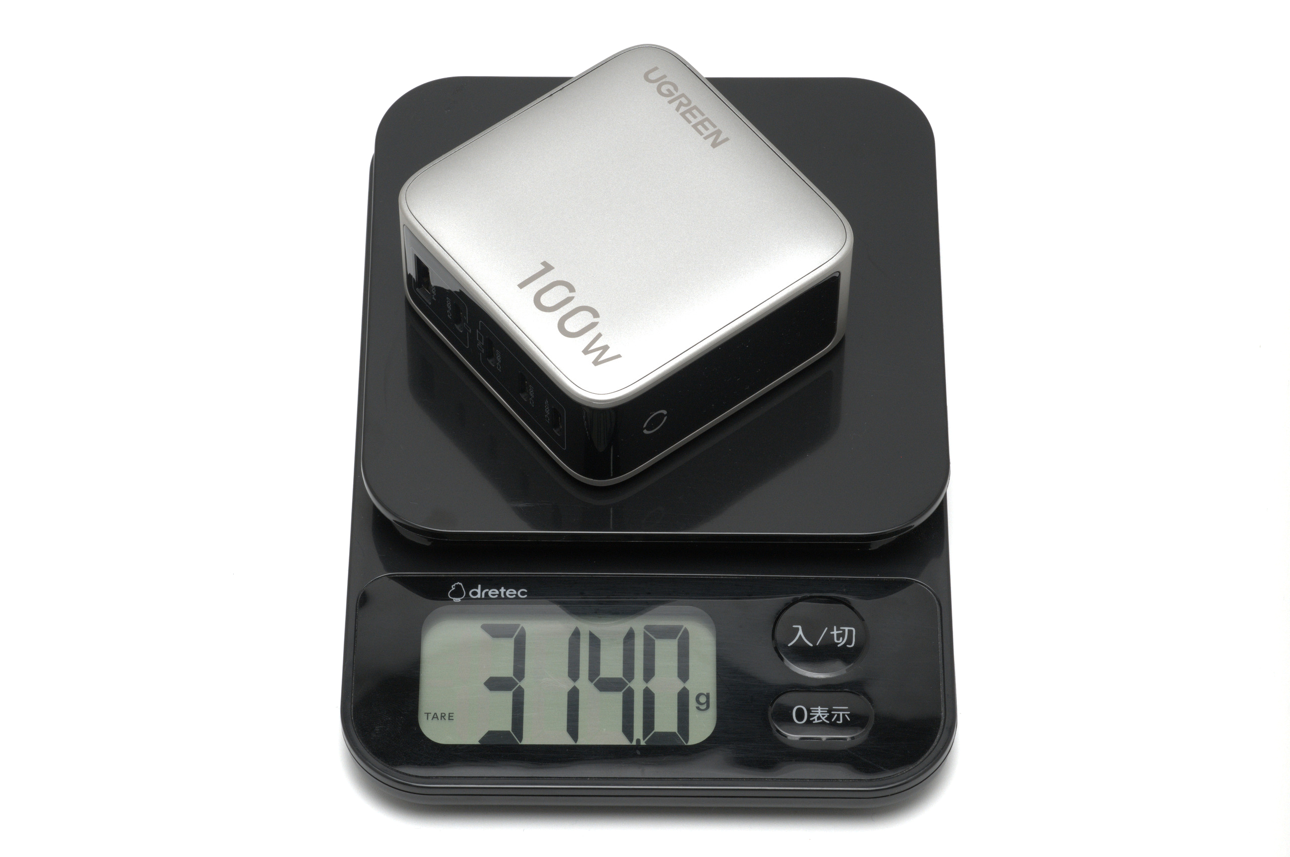 重量は実測で314.0gでした。5ポート100Wクラスだとこんなもんでしょう。