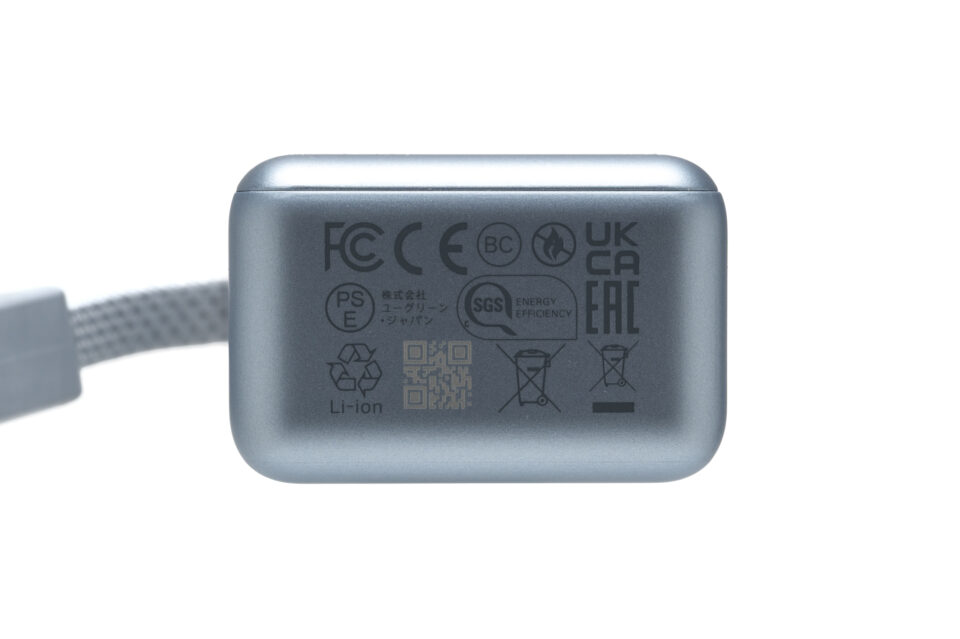 特徴的なのがこの内蔵USB-Cケーブル。長さは約22cmで、ストラップのように持ち歩き、必要なときだけ引き出して使えます。