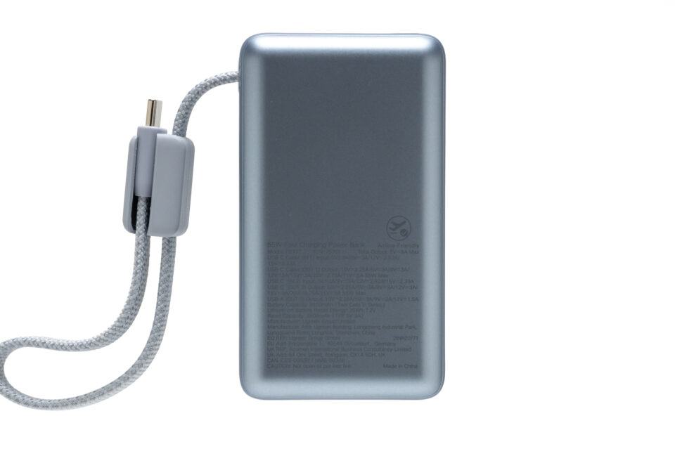 容量10,000mAh、最大45W出力の高出力モデルで、USB-Cケーブルを内蔵しているのが特徴です。これ1台バッグに入れておけば、スマホだけでなくノートPCまでカバーできる構成になっています。
