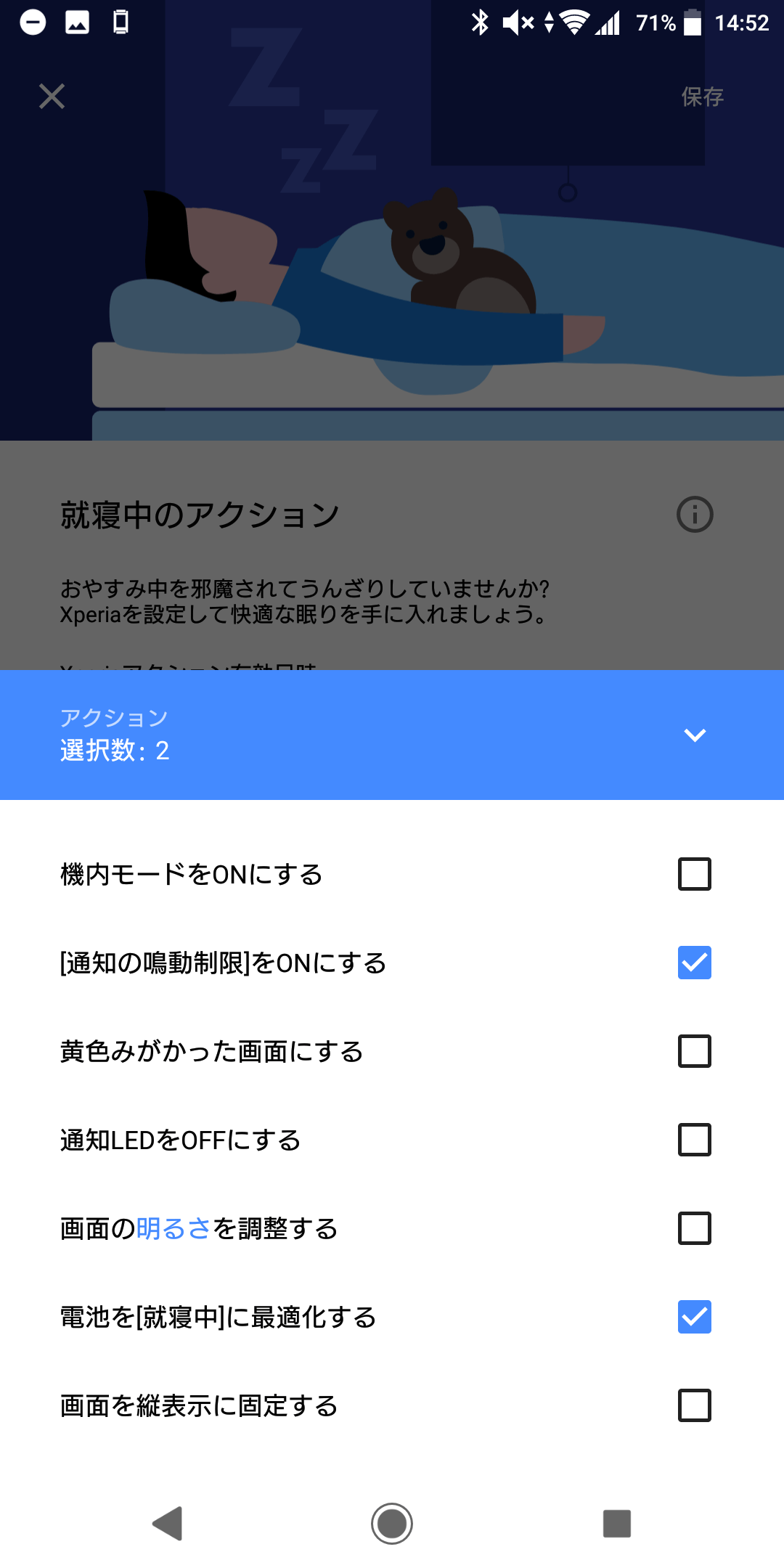 Xperiaアクションという、就寝中やゲーム中、通勤中などのシーンにあわせて機器の設定を一括で行ってくれる機能があります。 Xperia XZ2 Compact SO-05K Xperiaアクション それぞれ時間や場所、起動しているアプリなどの条件を設定して、そのシーンに応じてアクションを選択するんですが、例えば、就寝中は通知の鳴動制限をオンにして通知LEDをオフにしたり、ゲームをしているときは通知をブロックしてメディアの音量を指定した値に設定する、などといったことが可能になります。 「寝てるときに通知来るのうざいから通知オフにしよ~」とか「ゲームするからメディアの音量はこれくらいにして…」みたいなことがほぼ不要になるわけですね。この機能XZsからあるものなんですが、その時よりも使いやすくなってるなって感じがします。使ったことない人は一度使ってみてほしいですね。